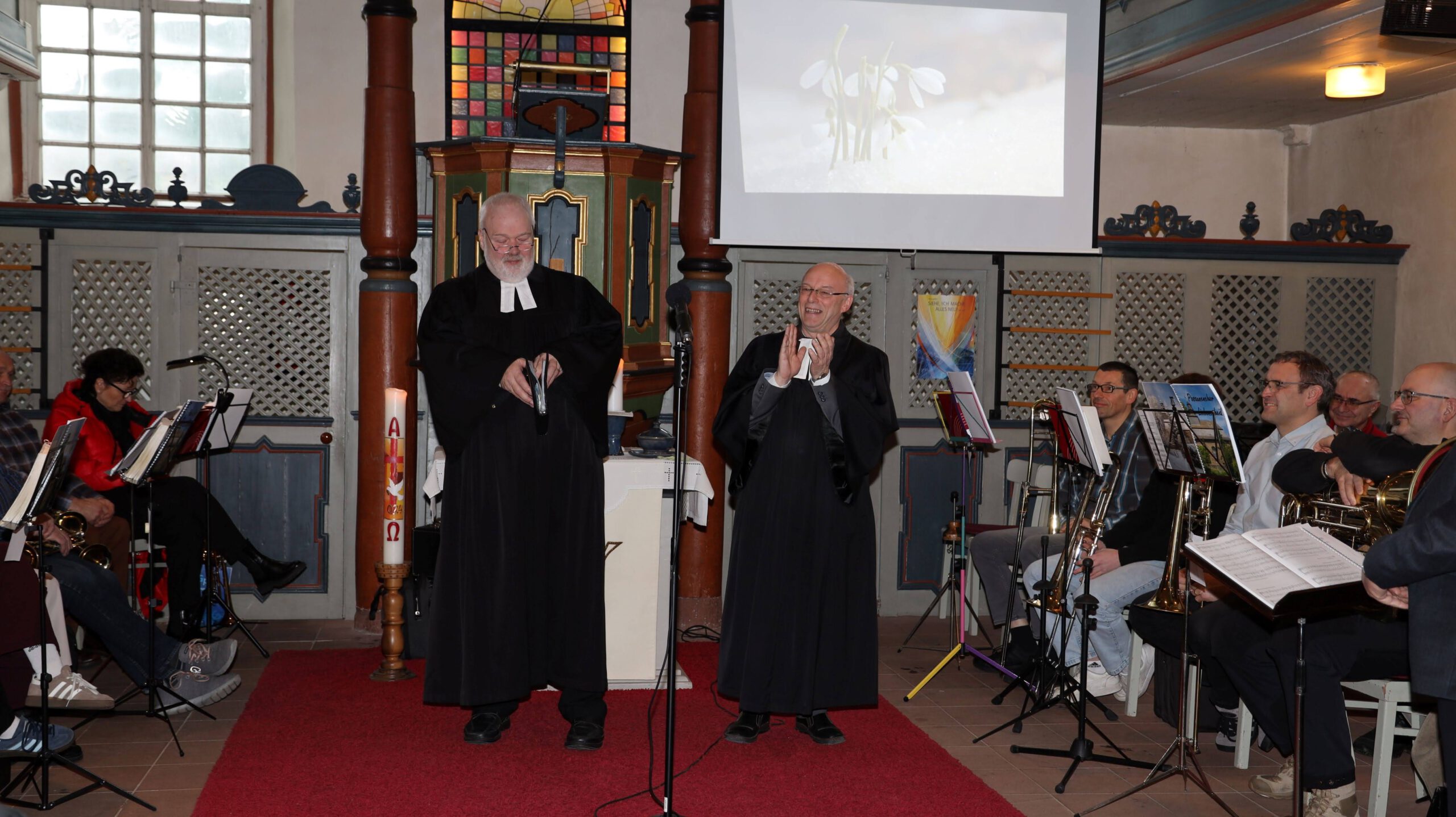 Am 25. Januar 2026 fand im gemeinsamen Gottesdienst unserer drei Kirchengemeinden in Liebenscheid die feierliche Einführung und Segnung der Prädikantinnen Marina Brado und Susanne Hofmann statt. Unter Mitwirkung der Pröbstin Sabine Bertram-Schäfer, dem stellvertretenden Dekan Benjamin Schiwietz sowie der Pfarrerin Iris Kühmichel und den Pfarrern Hartmut Failing und Peter Wagner wurden beide offiziell als Prädikantinnen beauftragt. Der gemeinsame Posaunenchor der Neukirch und Liebenscheid sorgten für die musikalische Begleitung, und beim anschließenden Kirchencafe gab es regen Austausch. Einen herzlichen Glückwunsch an Susanne Hofmann und Marina Brado sowie ein ganz großes Dankeschön für ihre tolle Unterstützung unserer Gemeinden!