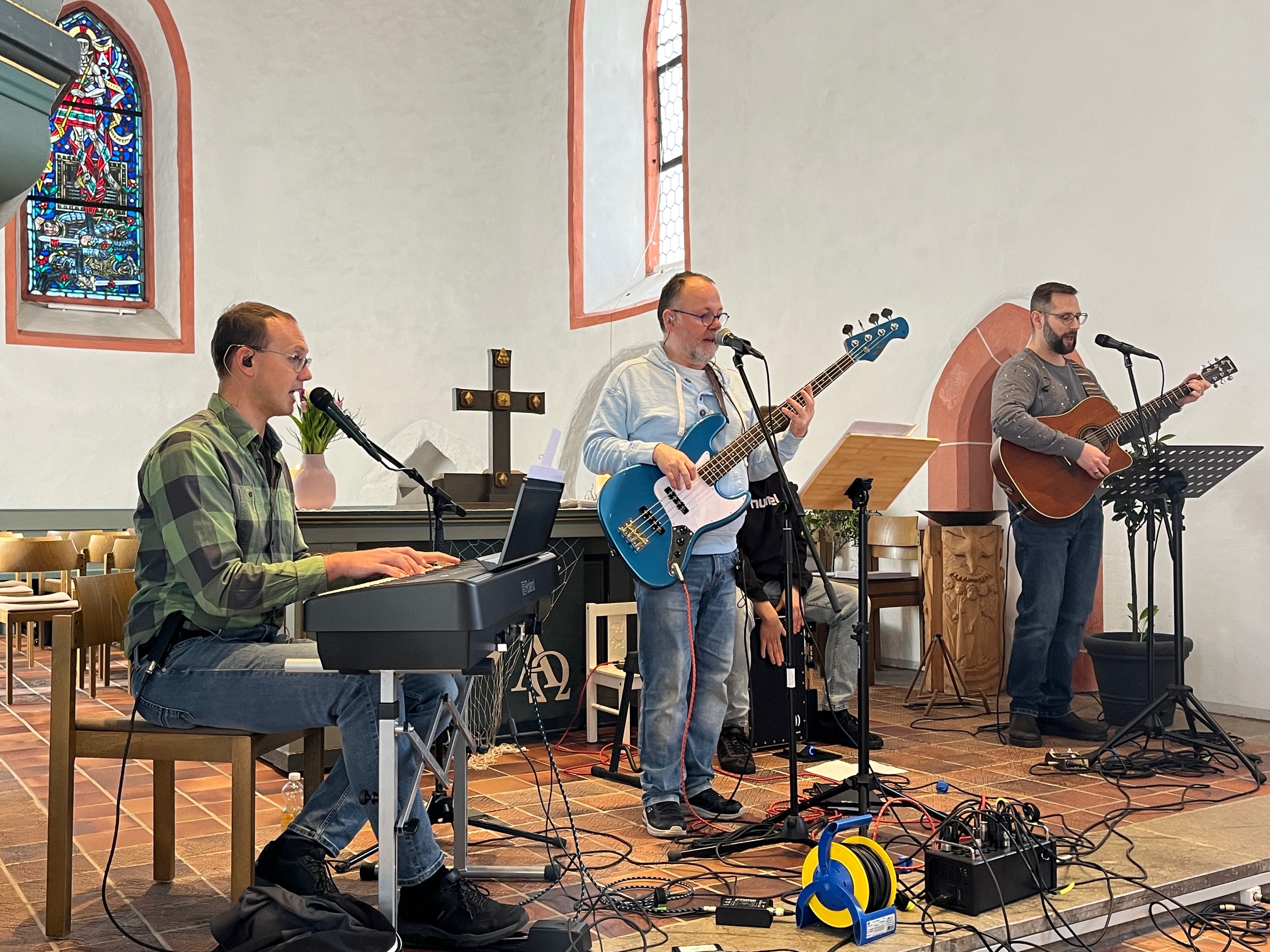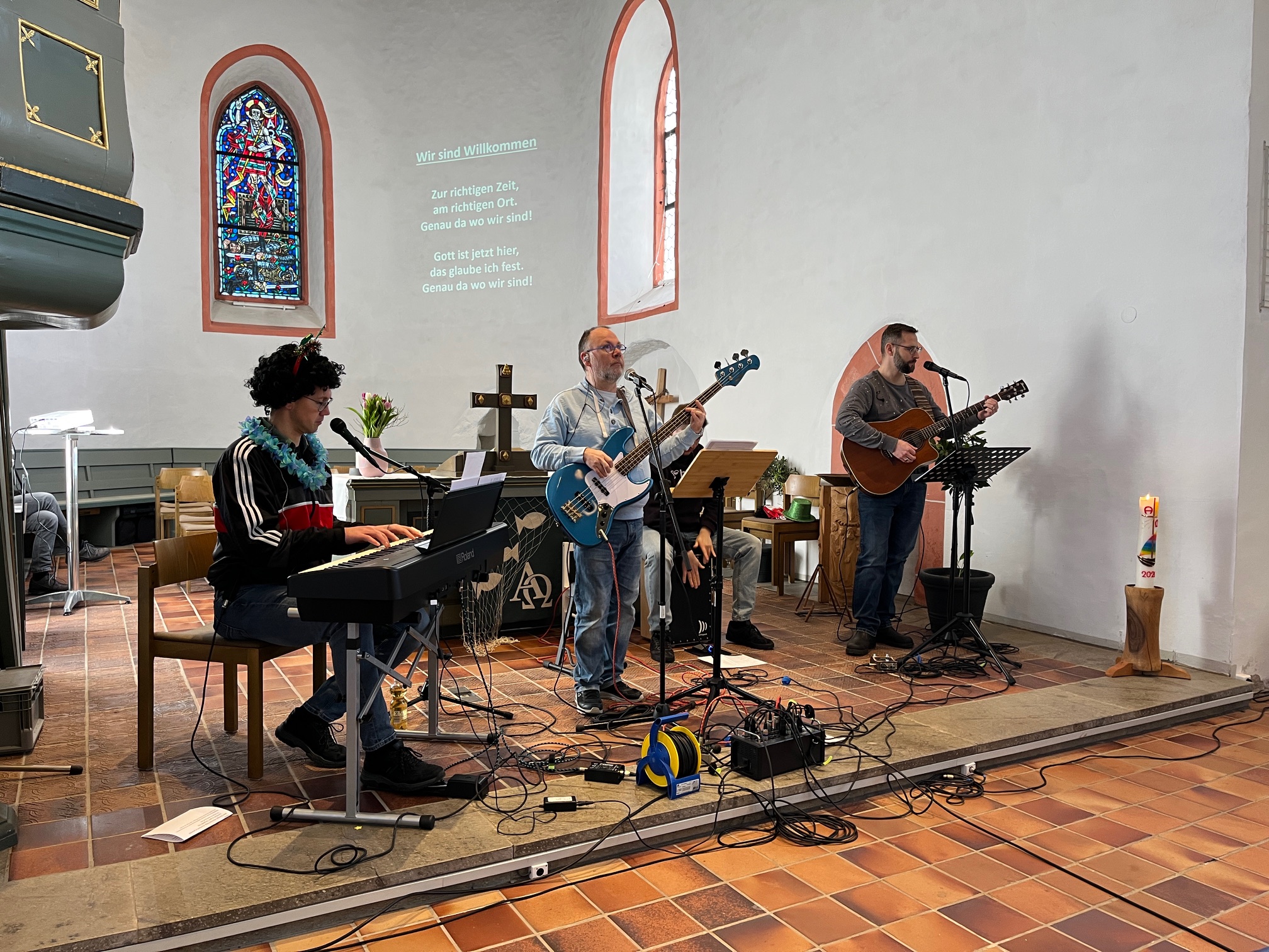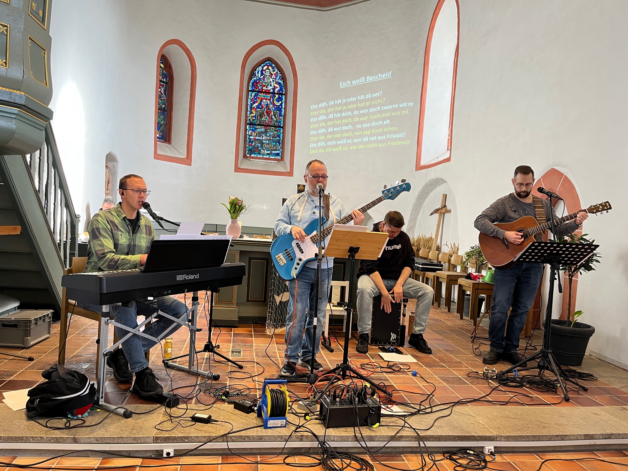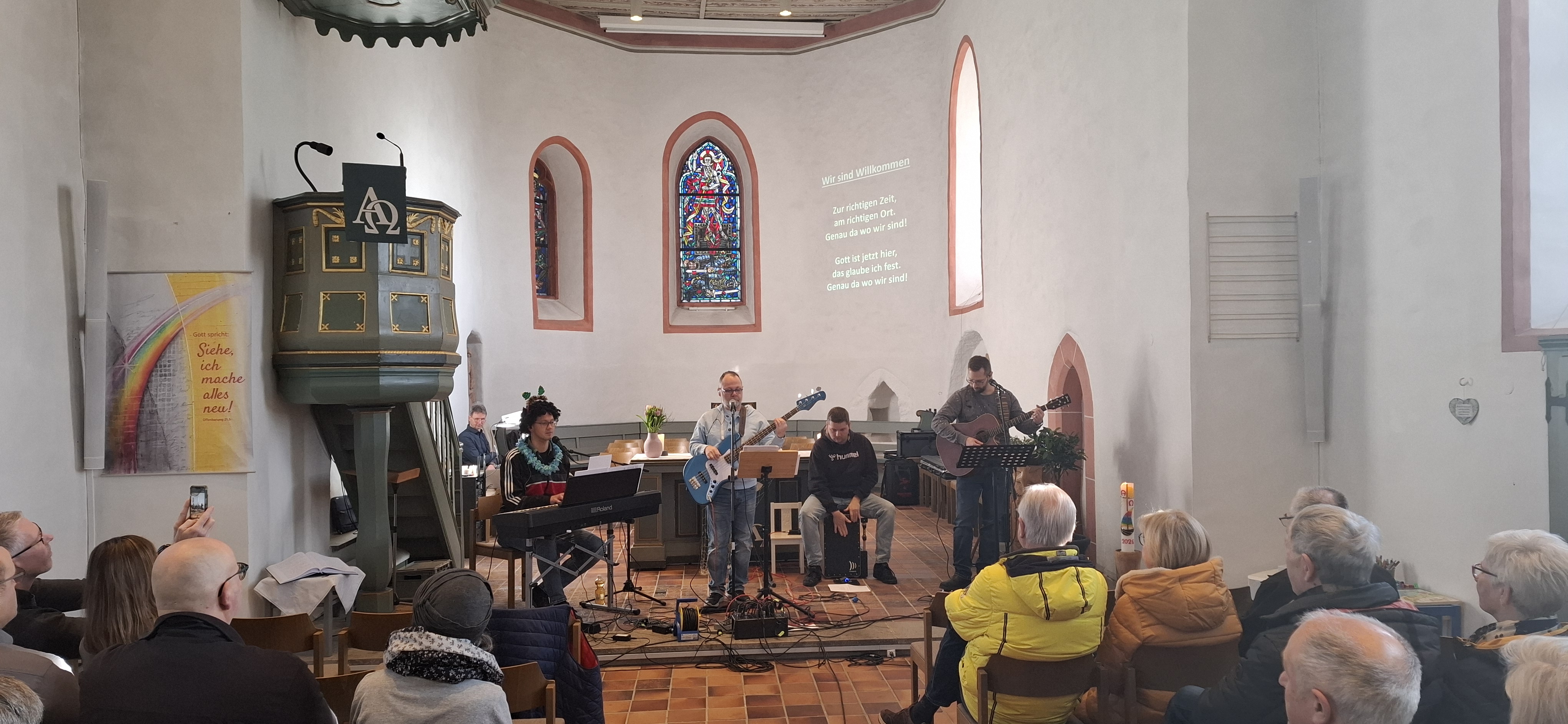 Am 15. Februar 2026 hatten wir bei unseren drei Kirchengemeinden – nach 2024 – erneut die Gruppe Hope:5015 mit 4 Bandmitgliedern zu Gast. Dabei ging es im Gottesdienst auf der Neukirch an diesem Morgen dreisprachig zu: Es gab Lieder in Englisch, eine Predigt auf „Hochdeutsch“ und Gesang in Derscher/Weitefelder Platt. Inhalte waren unter anderem die Bedeutung des Umgangs der Menschen miteinander, und in der Predigt (passend zu Karneval) wurden die „Masken“ bzw. „Verkleidungen“ angesprochen die wir alle in unserem Leben tragen – und dass wir vor Gott so treten können wie wir wirklich sind. In der abschließenden Zugabe „Kehr für dejner ejne Dür“ gab es dann noch eine kleine Erinnerung daran wie kleinlich wir leider gerne mit den vermeintlichen Fehlern anderer umgehen. Am Ende der Veranstaltung waren sich alle Zuhörer einig: Die Gruppe Hope:5015 kann auf jeden Fall wiederkommen!